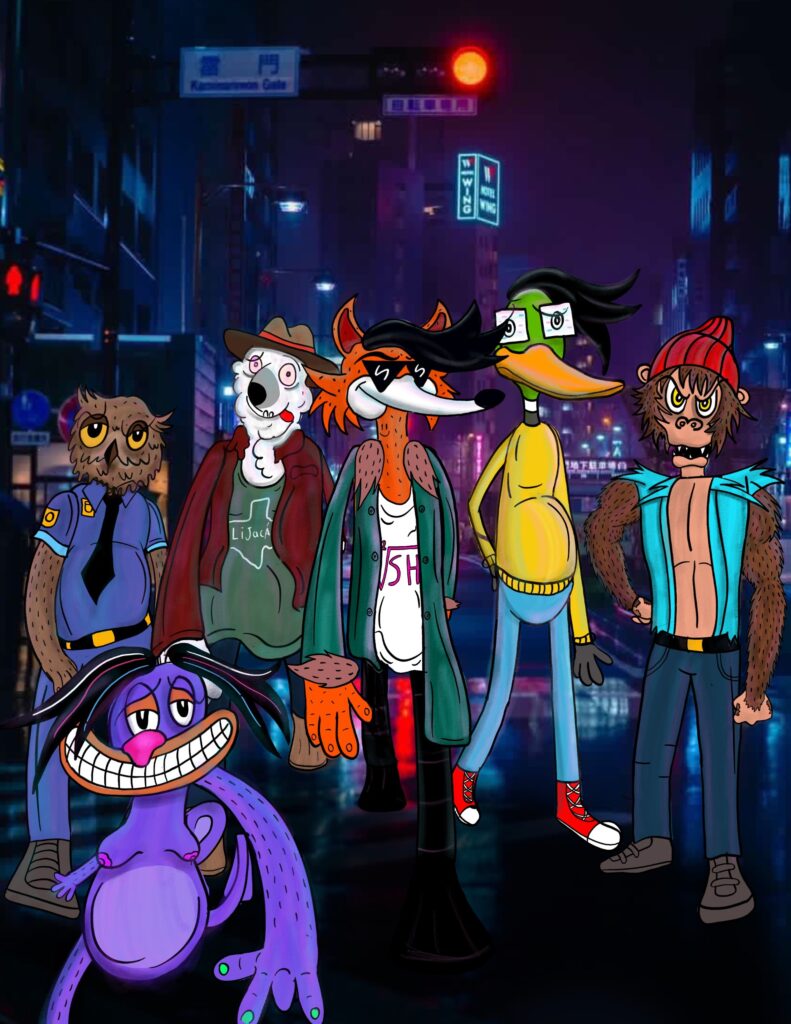 Nobody knows it, but Los Dog0s are special because they’re one of the few genuine and original things left in Psycholand. The rest of its inhabitants have a brain mass like chewing gum—manipulated and designed by a Pencil Corporation that secretly draws their curved lines with pre-set codes. That’s why everyone thinks the same way and is controlled by Jesus, who in truth is the devil disguised as a sheep, the false prophet.